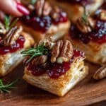 Keywords: baked brie, cranberry appetizers, holiday appetizers, puff pastry, brie cheese bites, festive appetizers, easy appetizers