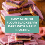 These Blackberry Bars feature a luscious homemade blackberry filling sandwiched between buttery almond and coconut flour shortbread layers, topped with a creamy blackberry-infused coconut butter frosting. Naturally sweetened with maple syrup and enhanced with a hint of lemon, they offer a gluten-free, dairy-free treat perfect for berry lovers looking for a wholesome dessert.