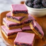 These Blackberry Bars feature a luscious homemade blackberry filling sandwiched between buttery almond and coconut flour shortbread layers, topped with a creamy blackberry-infused coconut butter frosting. Naturally sweetened with maple syrup and enhanced with a hint of lemon, they offer a gluten-free, dairy-free treat perfect for berry lovers looking for a wholesome dessert.