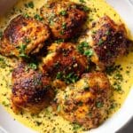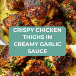 Golden-crisp chicken thighs smothered in a luxuriously creamy garlic sauce—this recipe elevates comfort food to a whole new level. Quick to prepare and packed with bold flavors, it’s perfect for weeknights or special dinners alike.