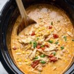 - Melt in the Cream Cheese: Return the shredded chicken to the crockpot and add the cream cheese. Cook the chili for an additional 8 to 10 minutes, stirring occasionally, until the cream cheese is completely melted and incorporated.