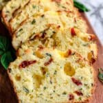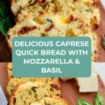 Keywords: Caprese bread, quick bread, mozzarella bread, savory bread, basil bread, sun-dried tomato bread, Italian quick bread, no yeast bread