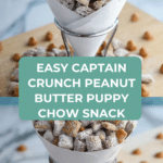 Peanut Butter Puppy Chow gets a fun twist with crunchy Captain Crunch cereal and creamy peanut butter chips. This easy, make-ahead dessert is perfect for gatherings and kids love helping to make it.