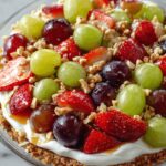 This Caramel Crunch Cheesecake Fruit Salad is a delightful no-bake dessert that combines creamy cheesecake bites with fresh strawberries and grapes, topped with crunchy nuts, graham cracker crumbs, caramel sauce, and white chocolate drizzle. It’s perfect for a refreshing and indulgent treat that is easy to prepare and sure to impress.