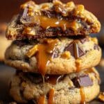 These Caramel Crunch Cookies are a delightful treat combining gooey caramel, crunchy Butterfinger candy bars, and a hint of sea salt. Perfectly soft in the center with a crispy edge, they are sure to satisfy your sweet tooth.