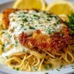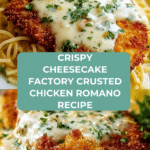 Transform dinner time with this Cheesecake Factory Crusted Chicken Romano, featuring tender chicken cutlets wrapped in a crispy panko and Romano cheese crust. Topped with melted mozzarella and a hint of lemon zest, it’s a flavorful dish that feels both elegant and comforting.