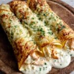 - Bake the Tortilla Bombs: Pour the prepared garlic cream sauce evenly over the rolled tortillas in the baking dish. Place the dish in a preheated oven at 375°F (190°C) and bake for 15 to 18 minutes, or until the sauce is bubbly and the tops of the tortilla bombs turn a golden brown color.