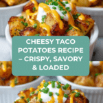 Cheesy Taco Potatoes is a delicious, hearty dish that combines crispy roasted potatoes with seasoned taco meat and melted cheese. It’s an easy and flavorful meal perfect for weeknights or casual gatherings.