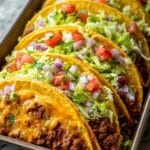 These Cheesy Tacos feature a savory ground beef filling seasoned with classic taco spices, topped with melted cheddar cheese and fresh vegetables. Perfectly baked to crispy perfection, they make a delicious and easy meal that’s great for weeknights or casual gatherings.