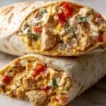 Chicken Bell Pepper Ranch Burritos are a hearty and flavorful wrap filled with seasoned chicken, sautéed bell peppers, ranch dressing, cheese, and rice in a soft tortilla, perfect for a quick and satisfying meal.