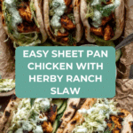 Keywords: Sheet Pan Chicken, roasted chicken, cabbage slaw, herby ranch slaw, easy weeknight dinner, one pan chicken, healthy chicken recipe, pita sandwiches