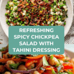 Keywords: chickpea salad, vegan salad, Mediterranean salad, healthy salad, protein-rich salad, tahini dressing, crunchy vegetable salad
