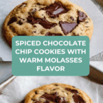 Delight in these warmly spiced chocolate chip cookies that combine the rich flavors of cinnamon, ginger, nutmeg, and cloves with melty chocolate chunks for a cozy and indulgent treat perfect for any occasion.