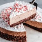 - Remove from Pan and Garnish: To remove the springform pan, run a plastic knife around the inside edges to loosen the pie, then carefully release the sides. Before serving, sprinkle the top with 3 tablespoons powdered sugar and ¼ cup crushed peppermint candy canes for a festive touch.