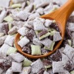 Keywords: Chocolate Puppy, muddy buddies, Rice Chex snack, Andes mints, mint chocolate snack, holiday treat, sweet snack mix, chocolate coated cereal