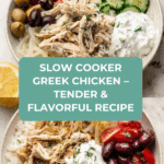 Keywords: Greek chicken, slow cooker chicken, shredded chicken, lemon garlic chicken, Mediterranean chicken, easy dinner, healthy chicken recipe