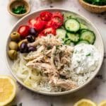 This Greek Chicken recipe features tender, flavorful chicken slow-cooked with aromatic herbs, garlic, lemon juice, and onions. Perfectly shredded and soaked with savory juices, it makes an ideal protein for serving with rice, pasta, pita, or atop a refreshing Greek salad.