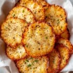 Cottage Cheese Chips are a delicious and healthy snack made by baking strained cottage cheese into crispy, flavorful rounds. Perfect as a low-carb alternative to traditional chips, these protein-packed snacks can be seasoned with onion powder and everything bagel seasoning for extra flavor. Serve with your favorite dip like tzatziki or ranch for a satisfying treat.