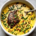 Cowboy Butter Dipping Sauce is a flavorful, garlicky butter sauce infused with fresh herbs, citrus, and a blend of spices. Perfect for serving warm as a dipping sauce or drizzling over grilled meats, seafood, or vegetables, it combines spicy, tangy, and savory notes that elevate any dish with rich buttery goodness.