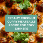 This Creamy Coconut Curry Meatballs recipe is a flavorful, comforting dish featuring juicy meatballs simmered in a rich, creamy coconut curry sauce. Perfect for family dinners or cozy nights, it combines tender meatballs with a spicy and aromatic Asian-inspired sauce made from coconut milk, red curry paste, fresh ginger, and lime, finished with fresh cilantro for a bright touch. Serve over rice or noodles for a satisfying meal that’s quick and easy to make.