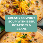 Creamy Cowboy Soup Dinner is a hearty and comforting dish that combines ground beef, beans, potatoes, and a hint of smoky spice in a rich, creamy broth. Perfect for a cozy evening, this flavorful soup is easy to prepare and sure to satisfy your appetite.