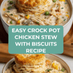 A cozy and comforting Crock Pot chicken stew featuring tender chicken breasts or thighs simmered with cream of chicken and celery soups, mixed vegetables, and seasoned with garlic and onion powder. Served with warm buttermilk biscuits, this slow-cooker recipe is perfect for an easy family meal with minimal effort.