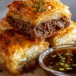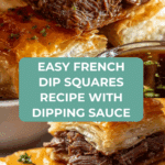 French Dip Squares are a fun and savory twist on the classic sandwich, combining tender roast beef, melted Swiss cheese, and a flavorful onion butter sauce inside golden crescent roll dough. Perfect for parties or a cozy meal, these squares come with warm beef broth for dipping, delivering all the rich flavors you love in an easy-to-eat bite.
