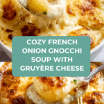Keywords: French onion soup, gnocchi soup, caramelized onion soup, Gruyère soup, easy soup recipe, comforting soup