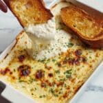 This Garlic Bread Dip is a warm, cheesy, and flavorful appetizer featuring roasted garlic blended into a creamy mixture of cream cheese, sour cream, mozzarella, and parmesan. Perfect for serving with crostini or crackers, it’s an irresistible dish to share at gatherings or enjoy as a cozy snack.