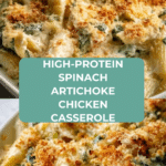 This high-protein spinach and artichoke chicken casserole is a creamy, comforting dish perfect for a wholesome family meal. Packed with tender chicken, fresh spinach, and tangy artichokes, it’s an easy way to enjoy a flavorful and nutritious dinner that everyone will love.