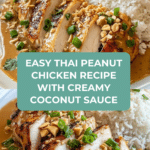 This Thai Peanut Chicken recipe is a delicious blend of creamy peanut sauce and tender chicken, perfect for a quick and satisfying weeknight dinner. Bursting with authentic flavors like garlic, ginger, and lime, it’s sure to become a favorite in your meal rotation.
