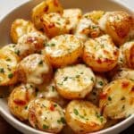 Store leftover creamy garlic sauce baby potatoes in an airtight container in the refrigerator for up to 3 days. Reheat gently on the stovetop or in the microwave, adding a splash of cream, milk, or broth to restore the sauce’s creamy consistency. For freezing, portion the potatoes and sauce into freezer-safe bags with excess air removed and freeze for up to 2 months. Thaw overnight in the fridge before reheating slowly over low heat.