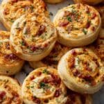 Store leftover pinwheels in an airtight container in the refrigerator for up to 3 days. Reheat in a preheated oven at 350°F for 5-7 minutes to retain crispiness. They can also be frozen before baking—place the sliced pinwheels on a tray, freeze until solid, then store in a freezer-safe bag for up to 2 months. Bake directly from frozen, adding a few extra minutes to baking time.