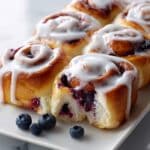 Lemon Blueberry Sweet Rolls are soft, fluffy pastries bursting with the bright flavors of lemon zest and juicy blueberries. These sweet rolls feature a tender bread flour dough filled with blueberry jam and fresh blueberries tossed in cornstarch, creating a delightful balance of tart and sweet. Baked to golden perfection and lightly glazed with lemon-infused icing, they offer a refreshing twist on classic sweet rolls, perfect for breakfast, brunch, or dessert.