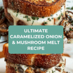 This Melt Sandwich features deeply caramelized onions and savory sautéed cremini mushrooms layered with melted Swiss cheese on toasted sourdough bread. Rich in flavor and texture, it’s a perfect comforting vegetarian sandwich ideal for lunch or a cozy dinner.
