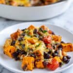 This Mexican-Style Chicken recipe features tender chicken breasts seasoned with classic Mexican spices, cooked with sweet potatoes, black beans, and fresh vegetables in a flavorful skillet dish. Topped with melted cheddar cheese and fresh cilantro, it’s a vibrant and hearty meal perfect for an easy weeknight dinner.