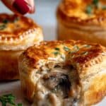 Mini Mushroom & Gruyère Pot Pies with Thyme are a deliciously savory appetizer featuring a creamy mushroom filling enriched with Gruyère cheese, encased in flaky puff pastry. These individual pies combine earthy mushrooms, fragrant thyme, and a touch of Dijon mustard for complex flavors, baked to golden perfection for a cozy, crowd-pleasing treat.