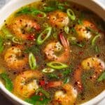 A light and cleansing Miso-Ginger Lemon Shrimp Detox Broth that combines the health benefits of miso, ginger, garlic, and turmeric with succulent sautéed shrimp. This nutrient-packed broth offers a comforting, flavorful elixir perfect for detoxification and wellness, served warm with fresh herbs and bright lemon accents.