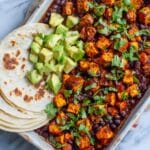 Keywords: chicken tacos, pineapple tacos, one pan dinner, chipotle chicken, easy taco recipe, baked chicken tacos, weeknight dinner