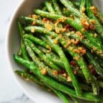Yes, you can prepare the green beans and season them in advance, but it’s best to roast them close to serving time for optimal texture and flavor. If you do make them ahead, store unroasted, seasoned green beans in the refrigerator for up to 12 hours before roasting.
