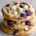 Yes! Use frozen blueberries straight from the freezer without thawing to prevent the juice from bleeding into the dough, which keeps the cookies looking appealing.