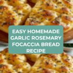 Focaccia is a classic Italian flatbread known for its crispy crust and soft, airy interior. Infused with garlic, rosemary, and Parmesan, this homemade focaccia is perfect as a side, snack, or base for sandwiches. Its simple ingredients come together to create a deliciously fragrant bread that’s surprisingly easy to make.