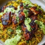 This Peruvian Chicken and Rice with Green Sauce recipe features crispy, juicy chicken thighs paired with fragrant cilantro-lime rice and a vibrant, creamy aji verde sauce. The dish combines bold, tangy, and slightly spicy flavors typical of Peruvian cuisine, making it a perfect weeknight meal or a dish to impress guests with its authentic Latin American flair.