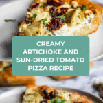 This artichoke pizza is a delightful combination of creamy cheeses, tender artichoke hearts, and sun-dried tomatoes on a crispy crust. It’s an elegant yet easy-to-make dish that’s perfect for pizza night or entertaining guests.