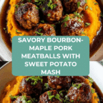 Keywords: pork meatballs, sweet potato mash, bourbon sauce, savory meatballs, comfort food
