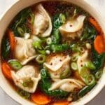 This comforting Potsticker Soup combines tender potstickers with a flavorful broth infused with ginger, garlic, and soy sauce, complemented by fresh vegetables and garnished with green onions and sesame oil. It’s a quick and easy soup perfect for a cozy meal, with options to customize for vegetarian or vegan diets.