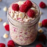Keywords: overnight oats, raspberry oats, white chocolate oats, no-cook breakfast, healthy breakfast, make-ahead oats, creamy oats, easy breakfast recipe