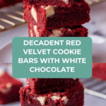 Deliciously soft and chewy Red Velvet Cookie Bars with a rich cocoa flavor, a hint of vanilla, and studded generously with white chocolate chips. Perfectly balanced sweet treats baked in a convenient 9×9 inch pan, ideal for sharing or a decadent everyday snack.