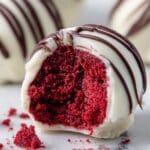 Delicious and festive Red Velvet Truffles made by combining a moist red velvet cake with creamy cream cheese, coated in white chocolate and decorated with sprinkles. These treats are perfect for holidays or special occasions and offer a rich and indulgent bite-sized dessert.