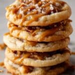 These Salted Caramel Toffee Cookies combine buttery, chewy cookie dough with pockets of rich caramel and crunchy toffee, creating a perfect balance of sweet and salty. They are easy to make and especially delightful when drizzled with extra caramel and sprinkled with sea salt on top.